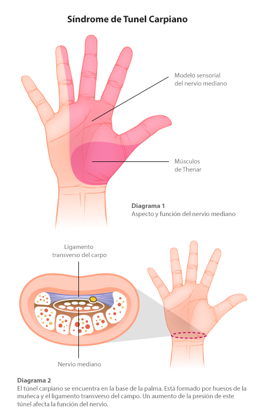 El resultado de un diagnóstico claro es síndrome de túnel carpiano y/o atrapamiento del nervio mediano en la muñeca (que le da la sensibilidad al pulgar, dedo índice y medio y, a veces, la mitad del anular).